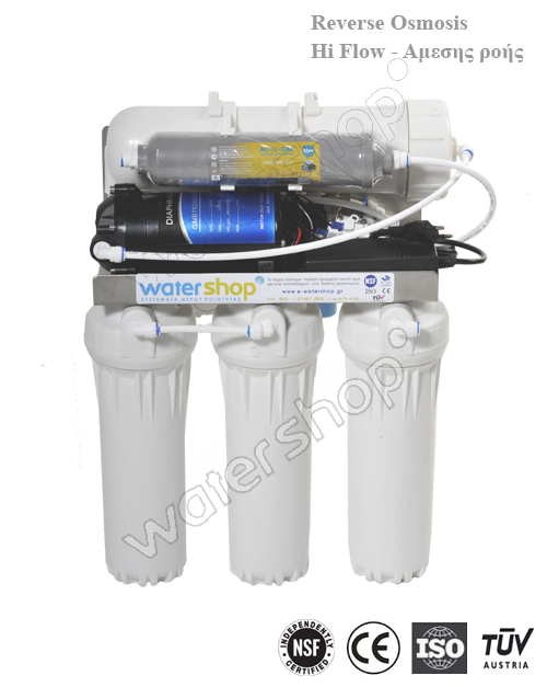 Σύστημα φίλτρων νερού αντίστροφης όσμωσης 5 σταδίων, χωρίς αντλία πιέσεως. Ένα αξιόπιστο σύστημα για περιοχές με μεγάλη πίεση δικτύου.