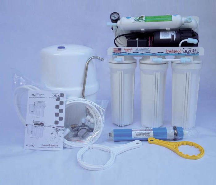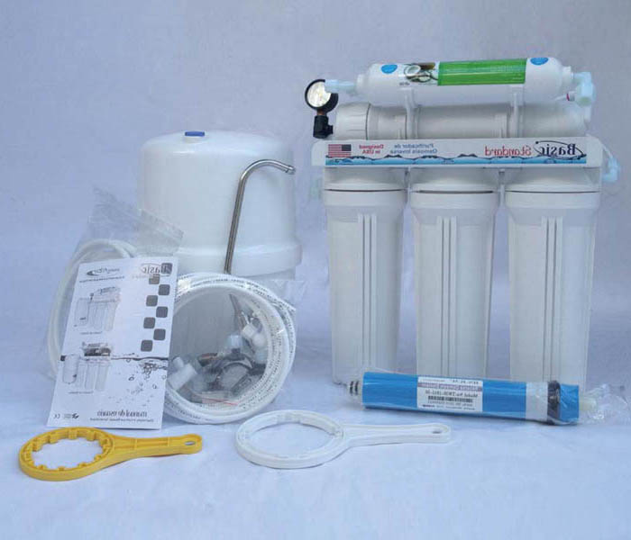 Σύστημα φίλτρων νερού αντίστροφης όσμωσης 5 σταδίων. Παράγει μέχρι 760 λίτρα νερού ανά ημέρα.